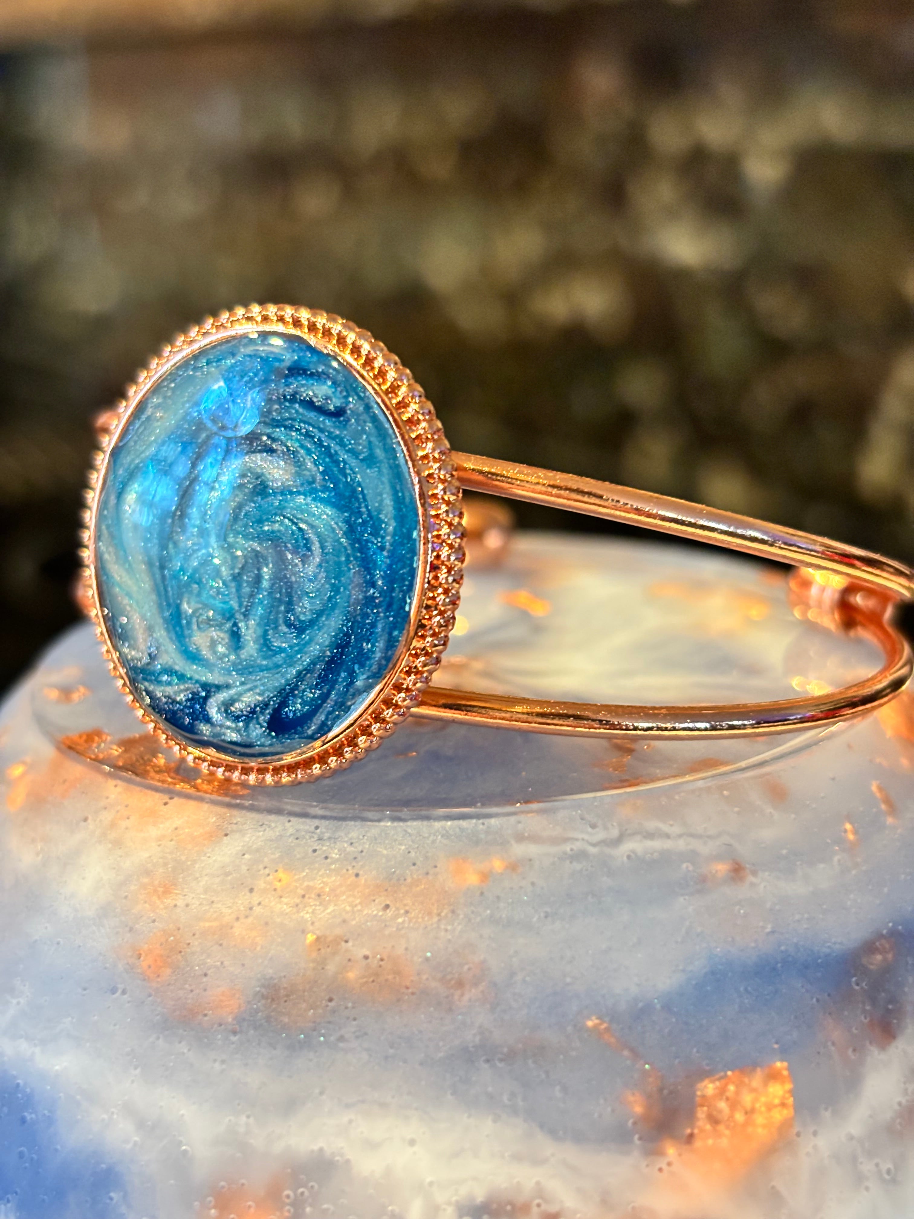 Ocean Swirl Resin Cuff Bracelet, Blue Green Coastal Jewelry, Beach Inspired Bangle, Summer Statement Bracelet, Gift for Her